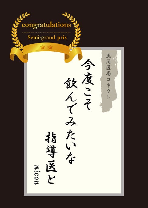 研修医自身が日頃思っていることや上級医・医学生が研修医と接して思うこと、自分が研修医だった頃の“あるある”を川柳にして振り返るコンクールです。「民間医局コネクト」内で12月13日(月)~12月23日(木)にかけて募集。選考の結果、119作品から下記5作品が選出されました。■内容