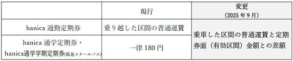 ・定期券面に記載の運賃区間を超えて利用する場合にいただく乗越し運賃について、下表のとおり変更いたします。