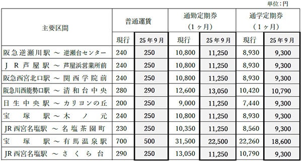 ・2025年9月1日以降に定期券を継続購入される場合は、改定後の運賃に基づいた定期券をご購入いただく必要がありますのでご注意ください。