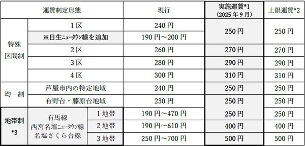 *3 地帯制:特定エリア内を均一運賃とし、エリアを跨ぐごとに加算する運賃制度 (新規設定)