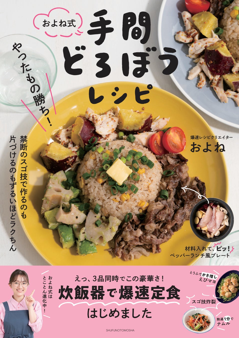 株式会社主婦の友社は、3月1日(金)、爆速レシピクリエイターおよねさんによるレシピ本『やったもの勝ち!およね式手間どろぼうレシピ』(https://www.amazon.co.jp/dp/4074566397)を発売いたします。このたび、ネット書店での予約がスタートいたしました。
