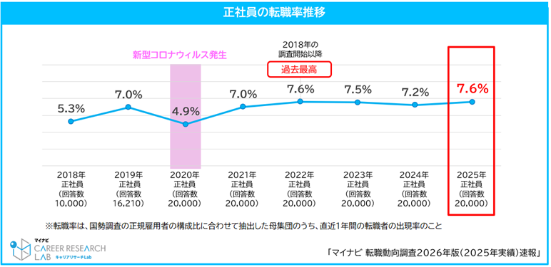 ◆2025年の正社員の転職率は7.6%で過去最高水準