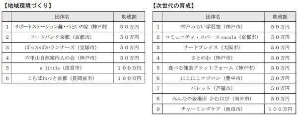 「地域環境づくり」と「次世代の育成」に取り組む合計15団体に総額900万円を助成
