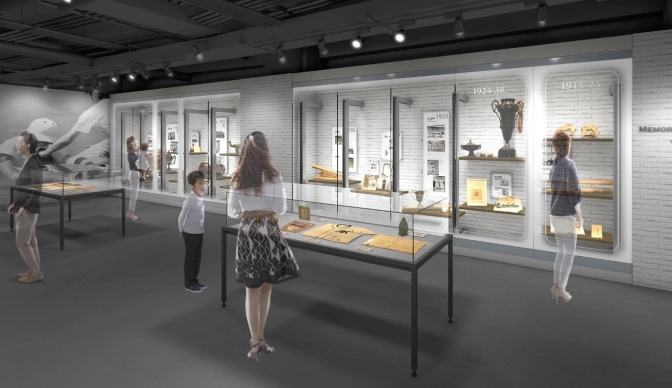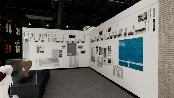通路の両側壁面に、「背番号ヒストリー」「選手・監督たちの名言」「ユニフォームヒストリー」を展示します。