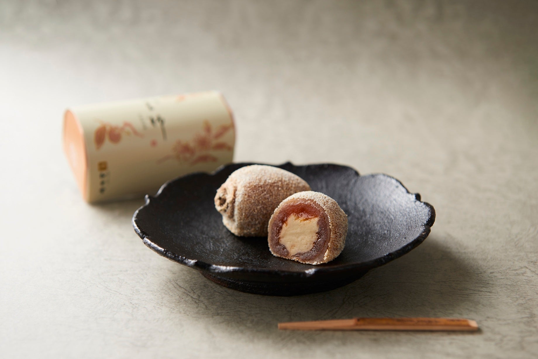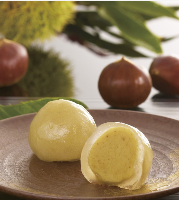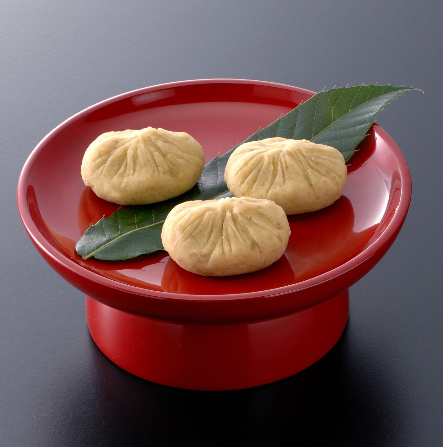 〈松月堂〉➀栗きんとん 3個入 1,026円 ➁栗苞(くりづつみ)1個 302円 ➂久里柿 1個 475円/1階ランキングBOX横