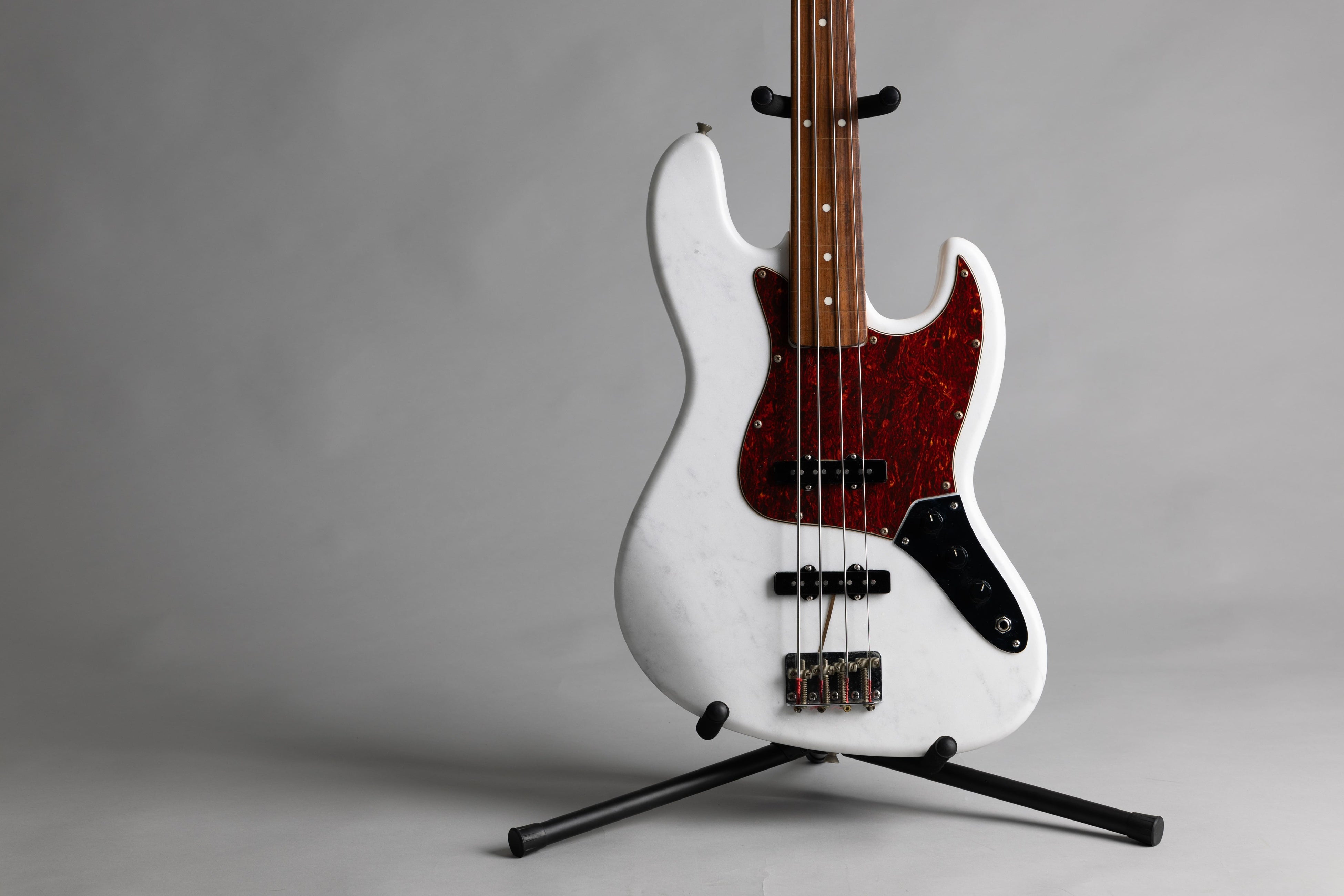 作品の出発点は、古道具屋での偶然の出会いや、手元で時間をともに過ごす中で訪れる「そろそろ石にしよう」という直感にあります。作家自身が“石で残したい”と感じたモチーフだけが選ばれ、バイク、スケートボード、ギター、ヘッドホンなど、