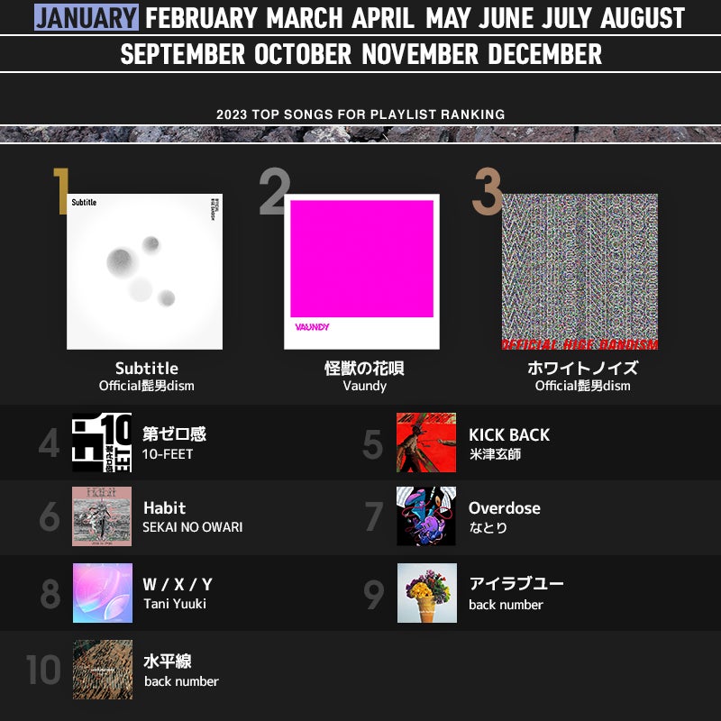■2023年1月度プレイリスト採用楽曲ランキングTOP10