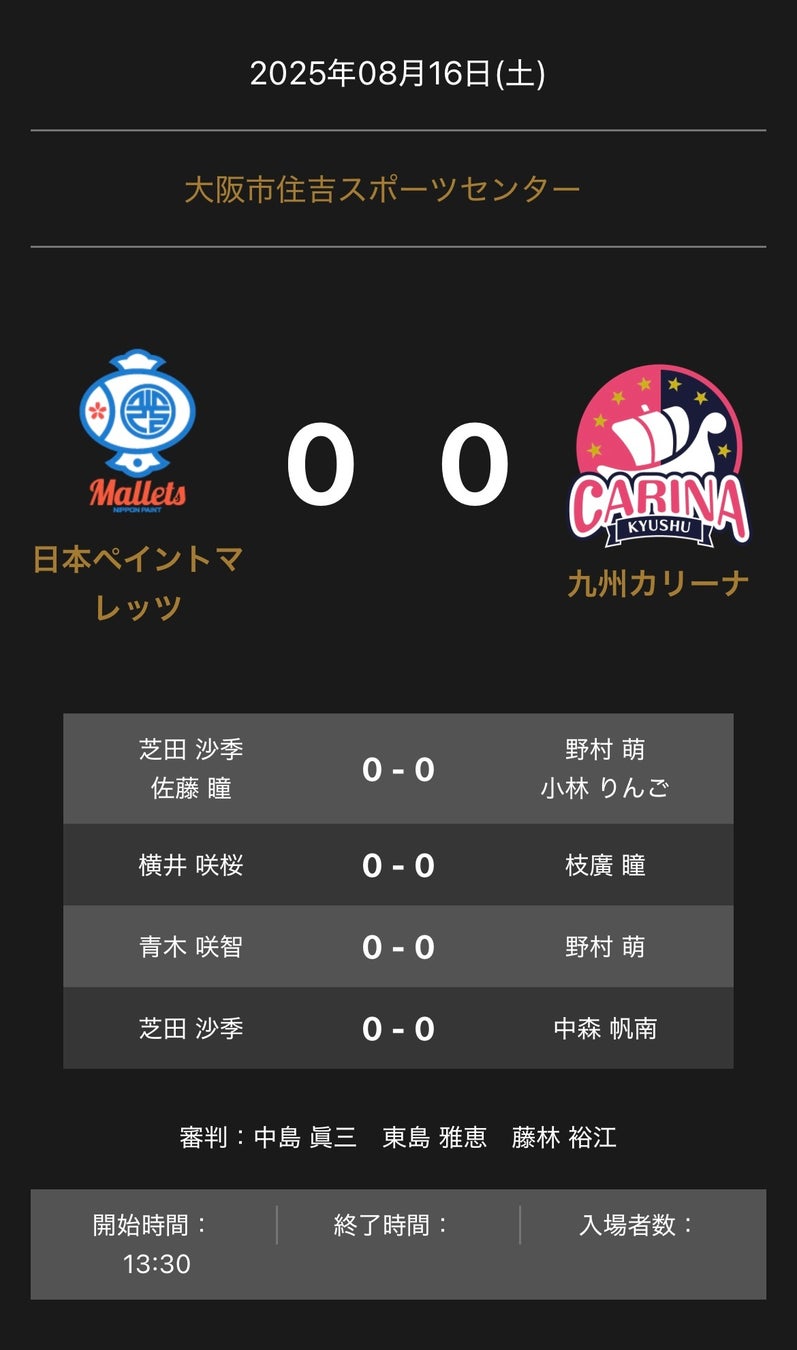 ノジマTリーグ 2025-2026シーズン 公式戦 8月16日開催 日本ペイントマレッツ vs 九州カリーナ 対戦オーダー発表