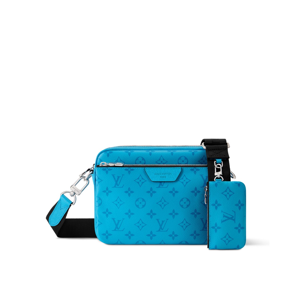 様々なコンパートメントを組み合わせて仕上げられた「トリオ·メッセンジャー」。鮮やかな色合いやトーン·オン·トーンのモノグラム·パターン、ブラックの幅広のストラップが、モダンな印象を演出します。メインポーチとフロントのファスナー付きポケット、着脱式のコインパースで構成され、洗練された多用途なアイテムです。