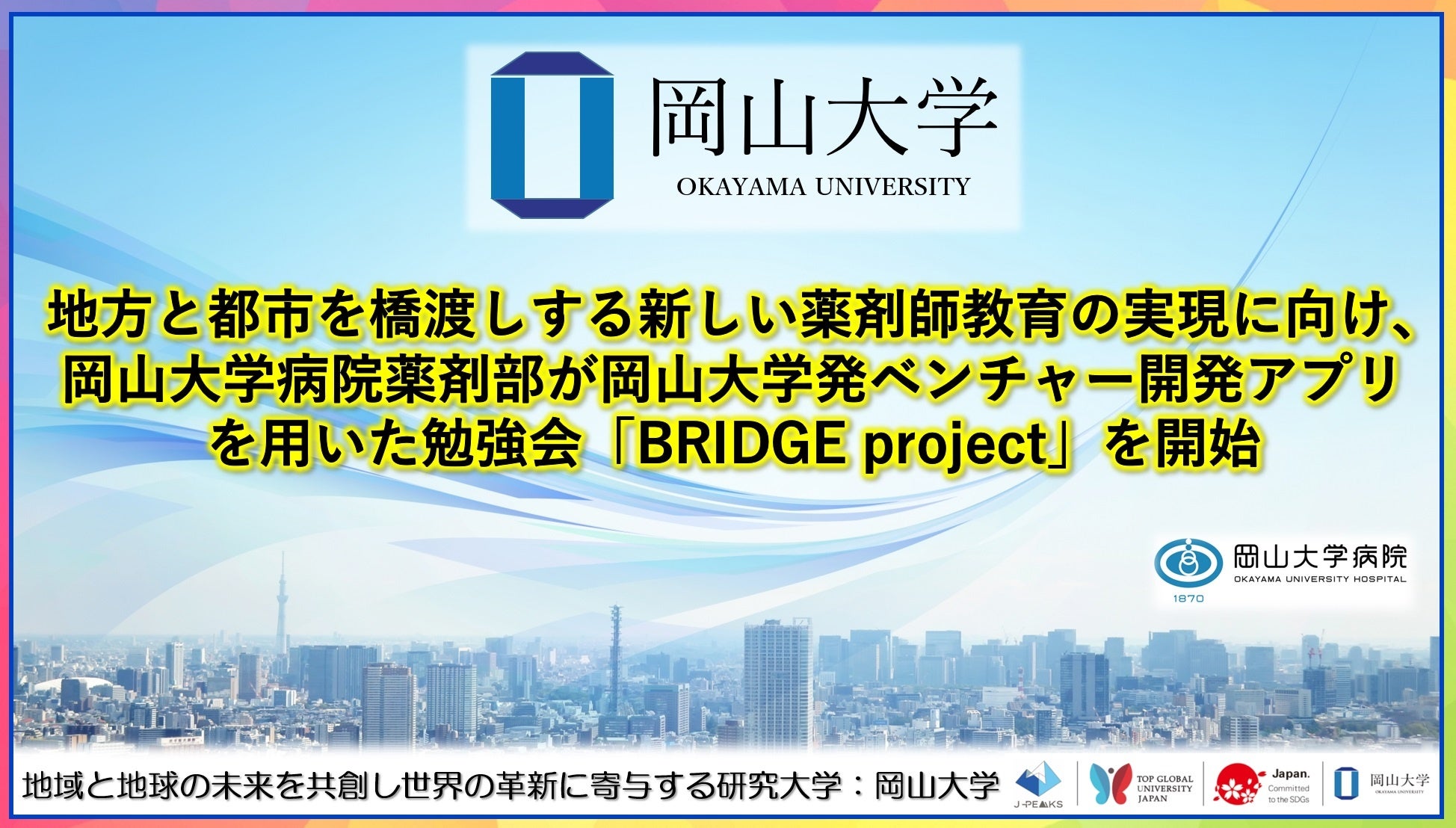 【岡山大学】地方と都市を橋渡しする新しい薬剤師教育の実現に向け、岡山大学病院薬剤部が岡山大学発ベンチャー開発アプリを用いた勉強会「BRIDGE project」を開始