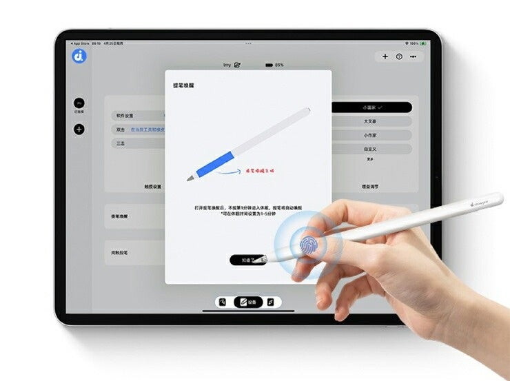 A:現時点では、Appleは純正のApple Pencilが備えている筆圧検知機能をサードパーティーのタッチペンに解禁していないため、本品も非対応になります。宣伝文句にある「傾き圧力センシング」とは、ペン間の接触角度を変更することでストロークの太さと強さを調整できることを意味します。