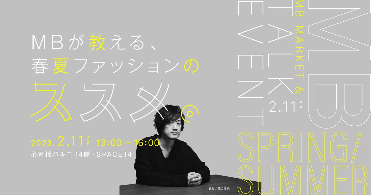 株式会社パルコ(本社:東京都渋谷区)が運営する心斎橋PARCOでは2月11日(土祝)に、人気ファッションブロガーのMB氏を迎え、春夏メンズファッションを紹介するYouTube公開収録とMB氏の私物フリーマーケットを開催いたします。