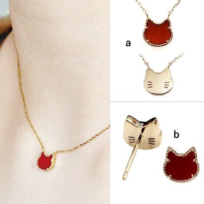 a. ネコネックレス 30,800円(K10YG/赤珊瑚/長さ:約40cm)