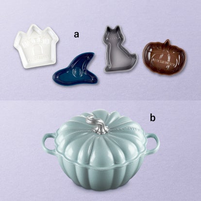 a. ミニ・ハロウィンディッシュ 4 個セット 6,050円(ストーンウェア/パンプキン:約幅10×奥行8×高さ3cm/ハウス:約幅11×奥行10×高さ3cm/ハット:約幅11×奥行8×高さ3cm/キャット:約幅8×奥行11×高さ3cm)