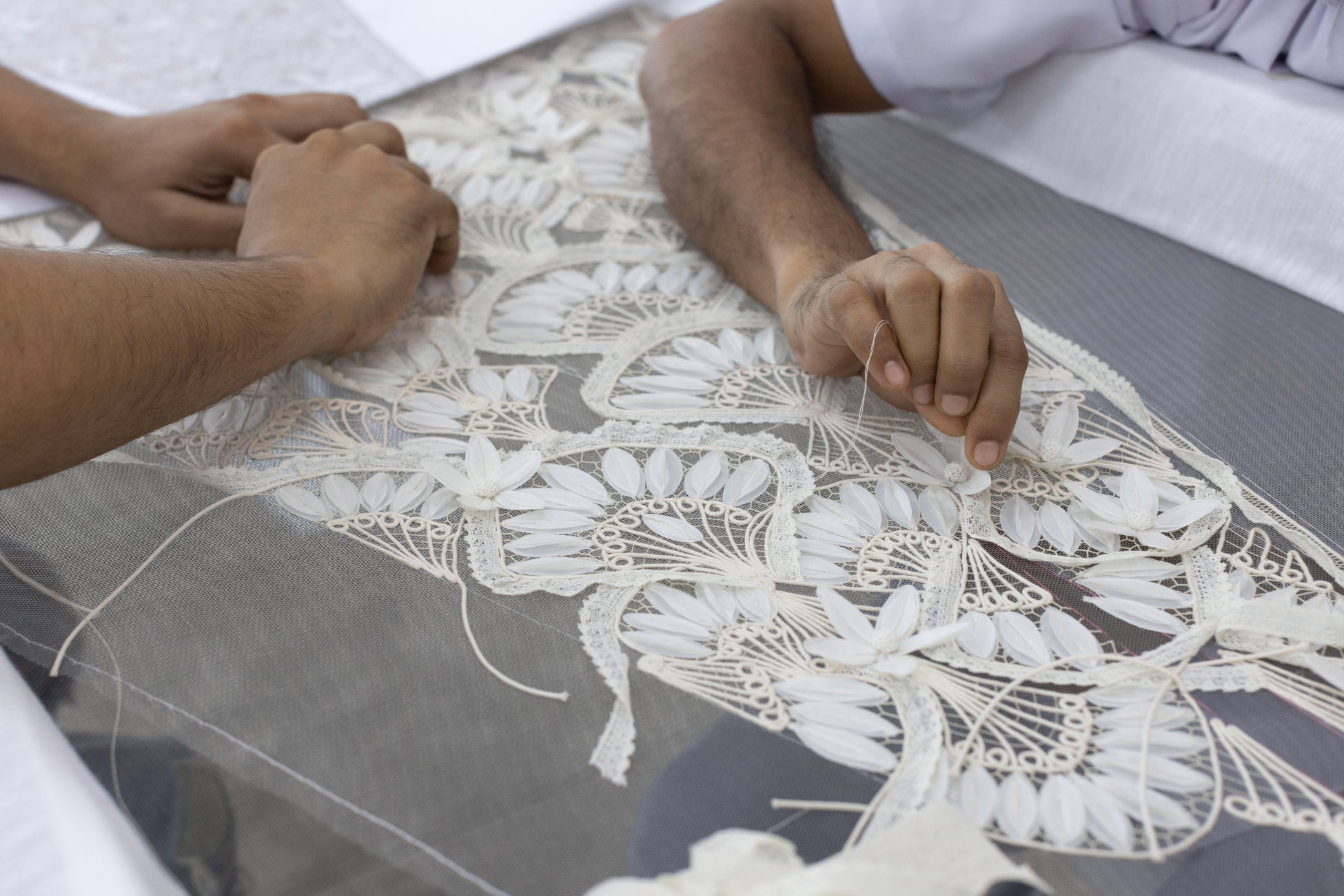ディオール 2026年クルーズ コレクションで発表された純白のロングドレス。そのサヴォワールフェールに焦点を当てた動画が公開されました。400以上のパーツが1つに重なり合ったドレス製作の起点となるのは、手仕事でカットされた無数のオーガンザです。繊細にカットされたその花びらが一枚ずつ重なり合い、精緻な配置によってまるで彫刻のようなブーケが生まれます。糸、オーガンザ、そしてコードの繊細なバランスの上に成り立つドレスはまるで宙に浮かぶような軽やかさと、儚さを纏っています。