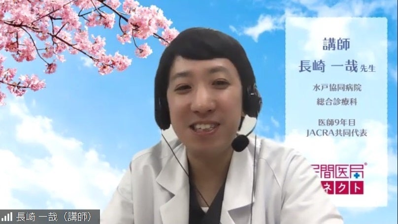 全国の研修指定病院のチーフレジデントをサポートする団体「Japanese Chief Residents Association (JACRA)」とのコラボ企画「失敗しない!研修生活のはじめ方」です。3月に、新研修医(6年生)限定で実施したもので、「国試が終わって研修医となるまでの期間に、何をしたら良いか分からない」という声を受けて開催しました。講師2名と研修医1年目の4名に、ご参加いただき、パネルディスカッションなど含め、2時間の講演となりました。大きな反響を受け、2022年3月にも、よりパワーアップしたセミナーを開催予定です。
