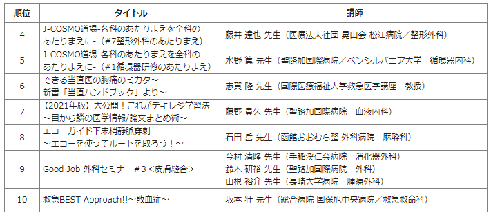 第4位から10位は、次のセミナーがランクインしました。(https://connect.doctor-agent.com/feature/seminarranking/)