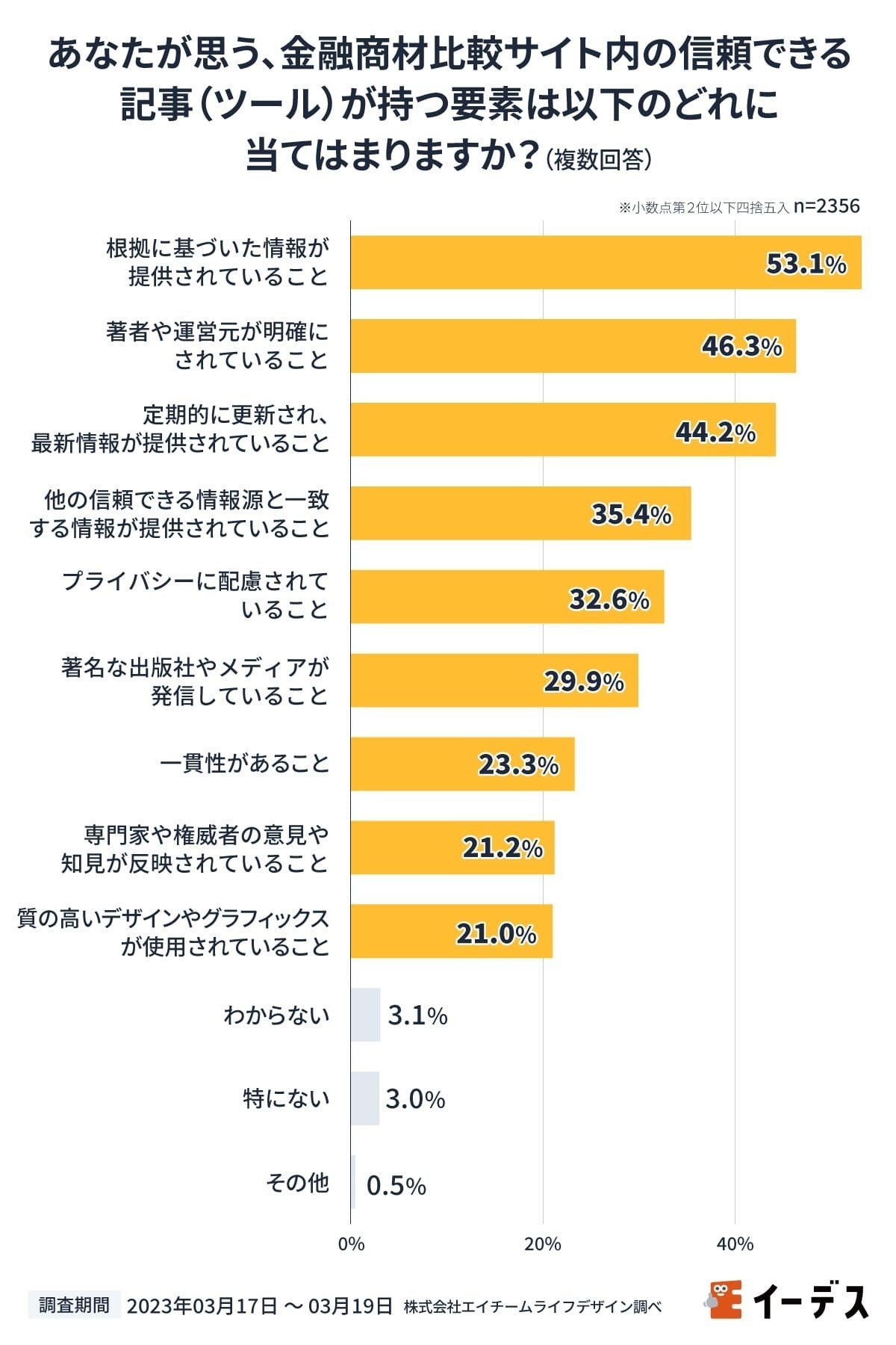 「金融商材の比較サイトに求める信頼の要素」についてのアンケート情報