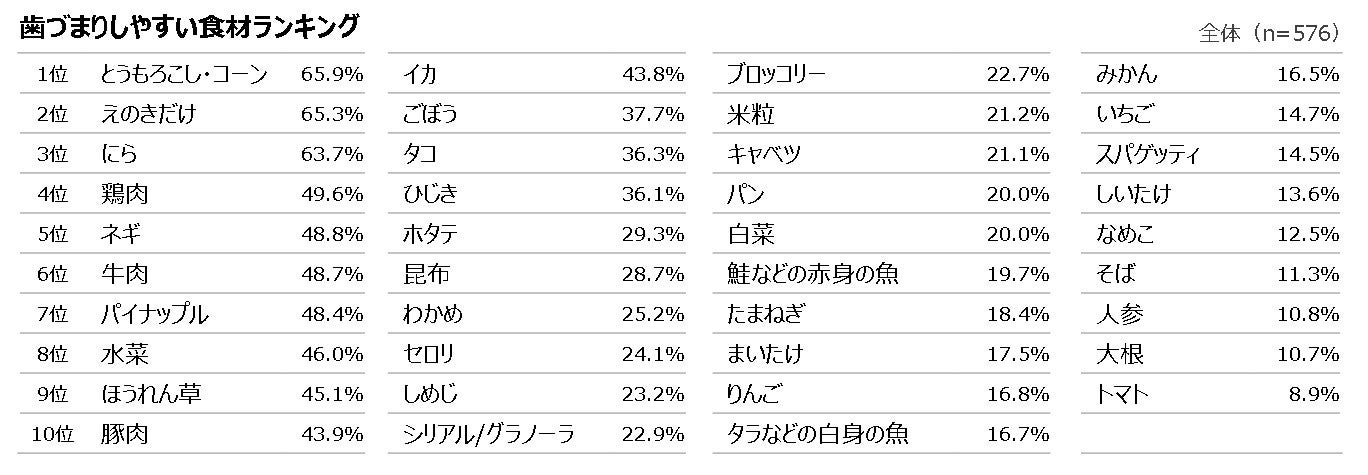 ◇歯に詰まりやすい食材TOP3「とうもろこし」「えのきだけ」「にら」