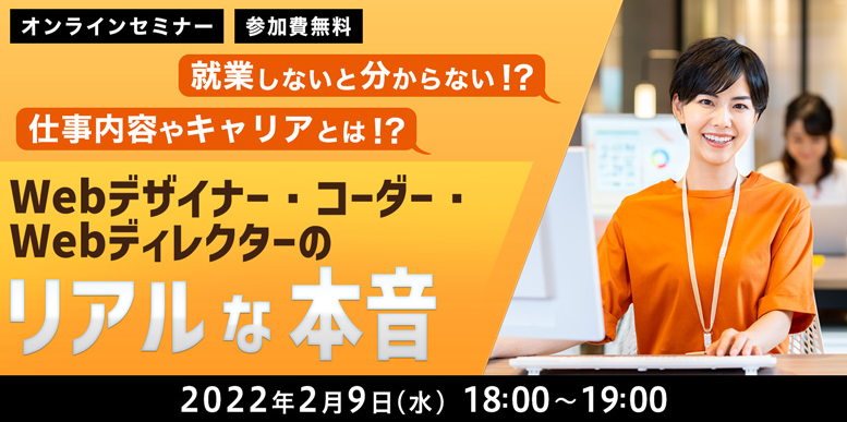 2/9(水)Web業界をめざすアナタにおすすめの無料セミナー「Webデザイナー・コーダー・Webディレクターのリアルな本音」