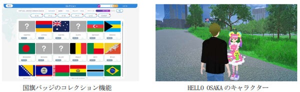 本イベントには、ブラウザ(スマートフォン・PC・タブレット)からアバターを通じて参加し、会場内を自由に散策することができます。また、大規模言語モデル「GPT-4o」によりリアルタイム通訳機能が利用できるメタバース空間で、異なる言語を話す参加者同士がボイスチャットで円滑にコミュニケーションを取ることができます。さらに、仲良くなった相手とお互いの国旗のバッジを交換することも可能で、バッジをコレクションして楽しめます。こうした機能に加え、当社のオリジナルショートアニメ「HELLO OSAKA」のキャラクターがメタバース空間に登場し、大阪梅田の観光案内を行います。