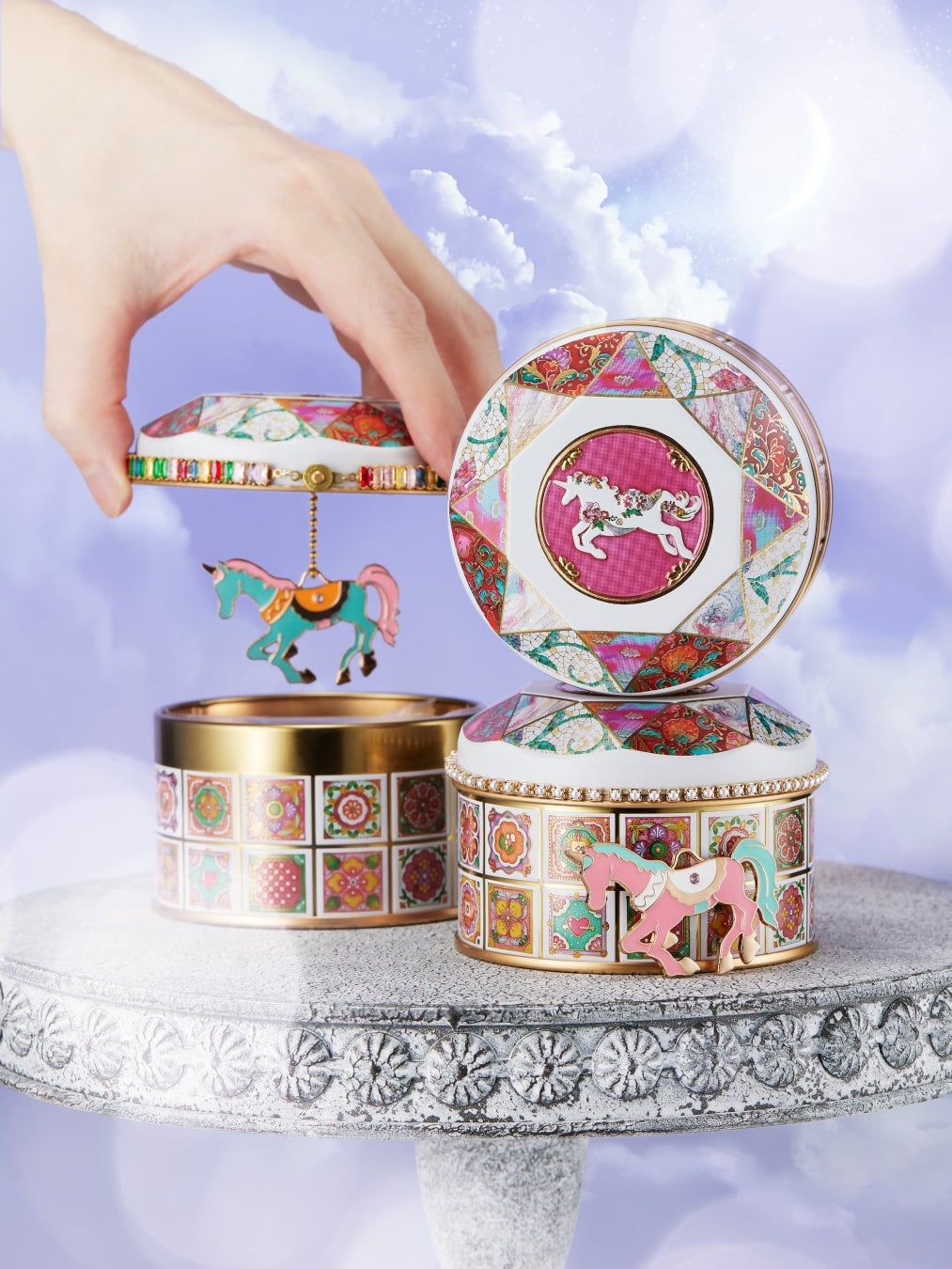 ➀ミニチュアタイル×ユニコーンがテーマの『ユニコーン缶』を大丸東京店で先行発売。缶の中にはサクサクした米粉フレークを濃厚なカカオで包んだグルテンフリーのショコラと、ユニコーンのチャームが1つ入っています。別売りで、お菓子缶用アクセサリーチェーンも新登場!
