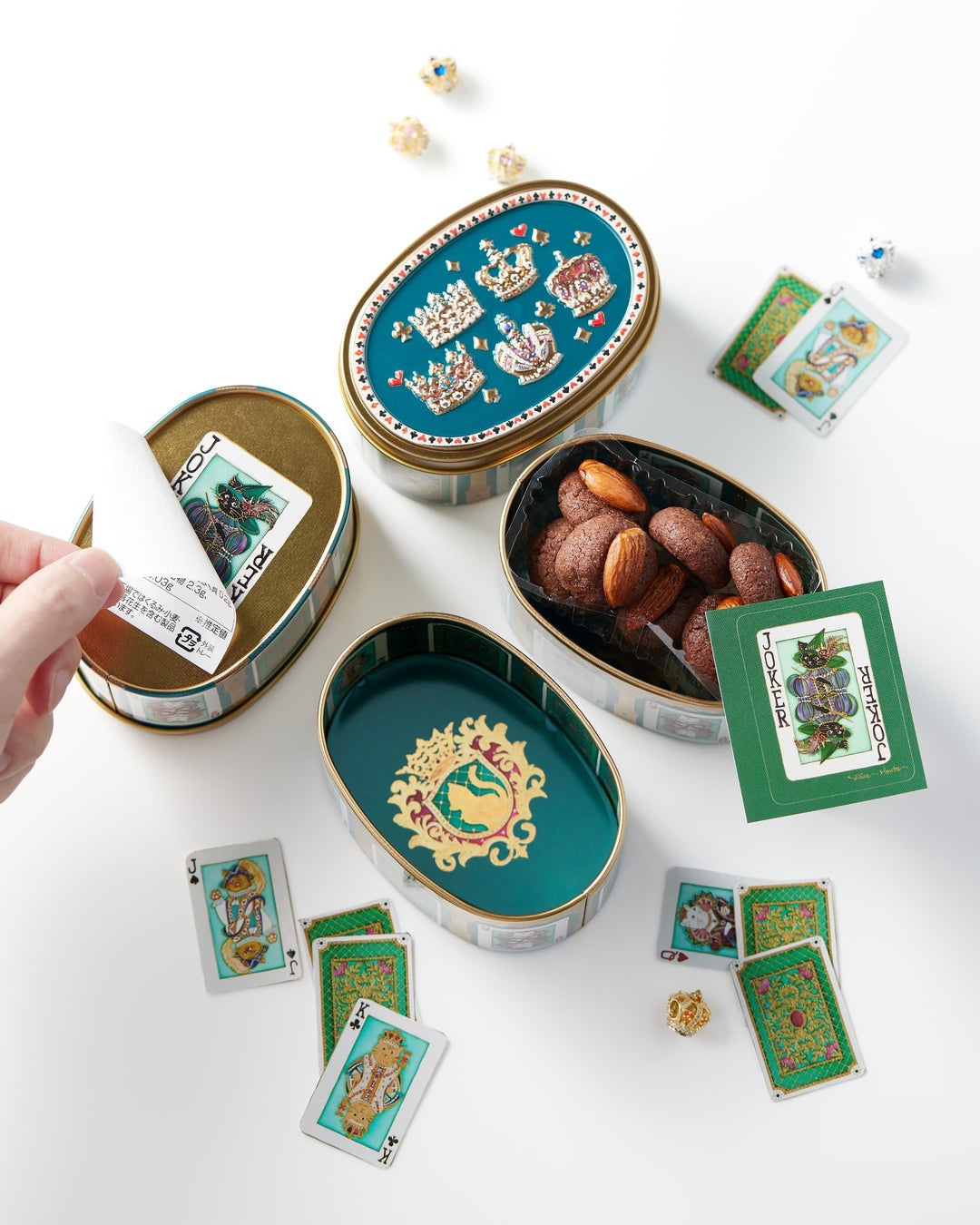 ➁バレンタイン限定「ネコのトランプ缶」第二弾が大丸東京店初登場。ときめき感たっぷりの仕上がりに!グルテンフリーと植物素材で作ったココアクッキーとキラキラのミニチュア王冠マグネットがランダムに1個はいっていて、開けるまでのお楽しみ。※22日、25日にペイントイベントも開催。
