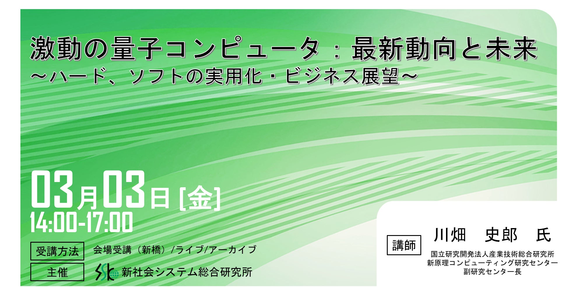 「激動の量子コンピュータ:最新動向と未来」と題して、国立研究開発法人産業技術総合研究所 川畑 史郎氏のセミナーを2023年3月3日(金)に開催!!