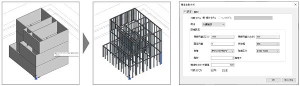 木造建築をBIM対応させることにより、建物の構造材や壁、屋根、窓、ドアなどの部材のほか、様々な図面や数量表の作成のためのテンプレートを標準化し、建物の設計を効率化します。これまで鉄骨造向けとしていた柱や梁の構造や、構造の耐火被覆などを自動的に生成する機能を木造にも対応し、建設資材の積算を行えるようにしました。また、施工シミュレーションに対応するほか、省エネ効果等の試算も行うことができるため、建物オーナーさまへサステナブルな建物を提案できます。