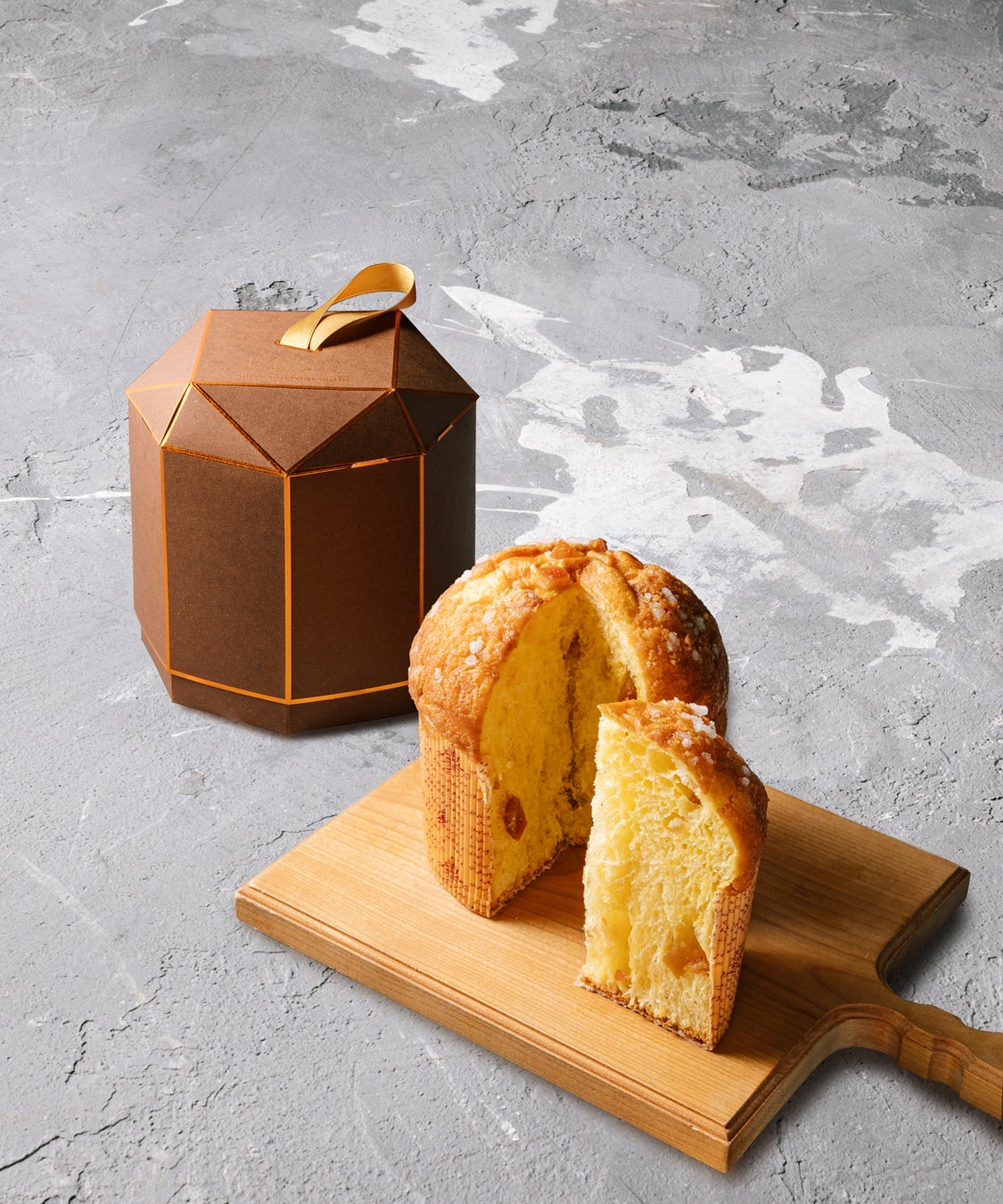 レモン、オレンジ、柚子ピールを練り込んだ、シンプルなパネットーネ。軽くしなやかな生地は口の中で解けるように溶けていきます。