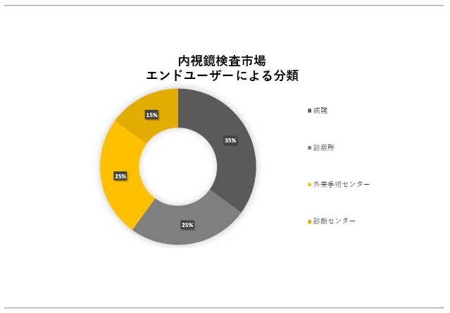 エンドユーザー別―内視鏡検査製品は、病院、診療所、外来手術センター、診断センターなど、さまざまな医療提供者によって使用されています。