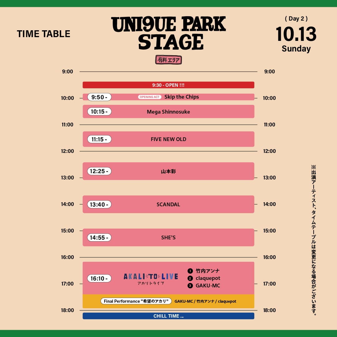 ■「UNI9UE PARK’24」有料エリア ライブパフォーマンス タイムテーブル