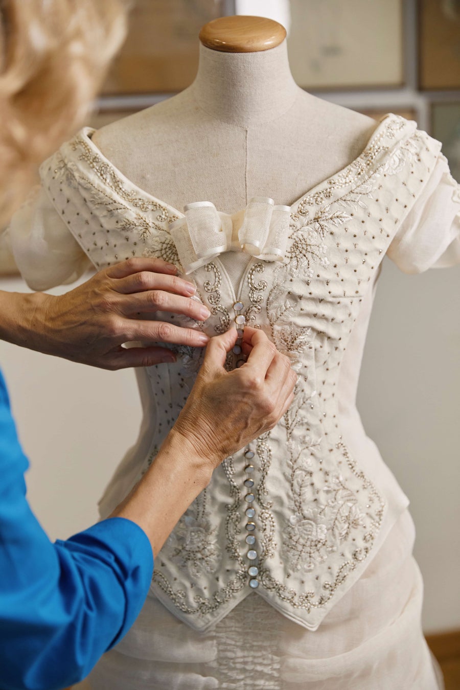 ウンベルト・ティレッリが1964年に設立した、その名を冠するコスチュームハウスは、ローマを拠点とし、歴史的な衣装製作の技術を継承しています。ショーと同時に公開されたマッテオ・ガローネ監督による映像作品『Les Fantômes du Cinéma(映画の亡霊たち)』のためにマリア・グラツィア・キウリは彼らの35万着のアーカイブから、映画史における傑作に関連する象徴的な衣装の数々を選び、12点の特別なルックを完成させました。オートクチュールと映画衣装という、異なる世界の技術と美学が交差する瞬間の舞台裏を動画でご覧ください。