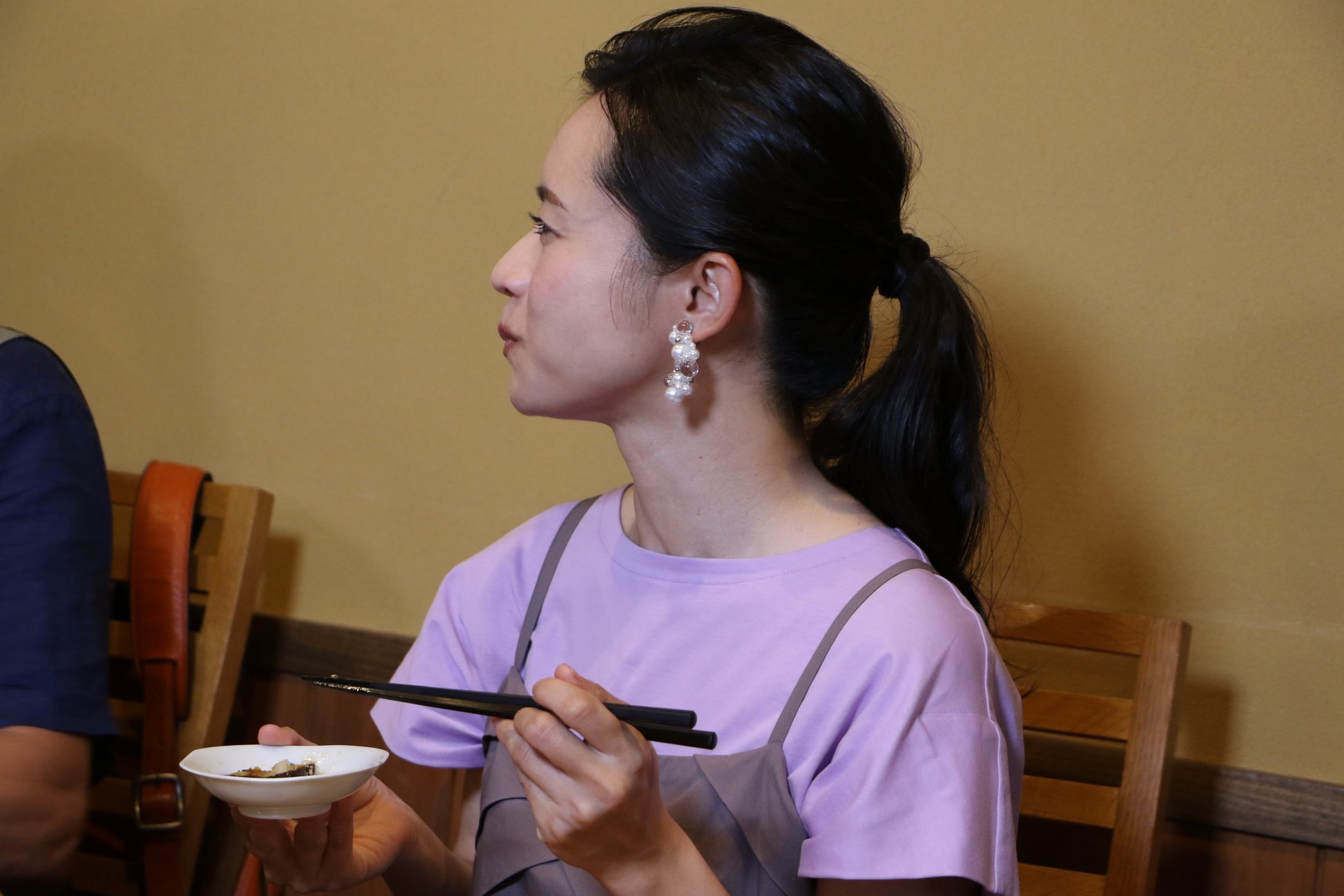地元の方々に愛され続ける『かつお醤油』や『ふしいち桐』を特別に焼きナスにかけて味見させてもらえることに。西に行くほど甘くなる醤油のスタート地点は備前!?