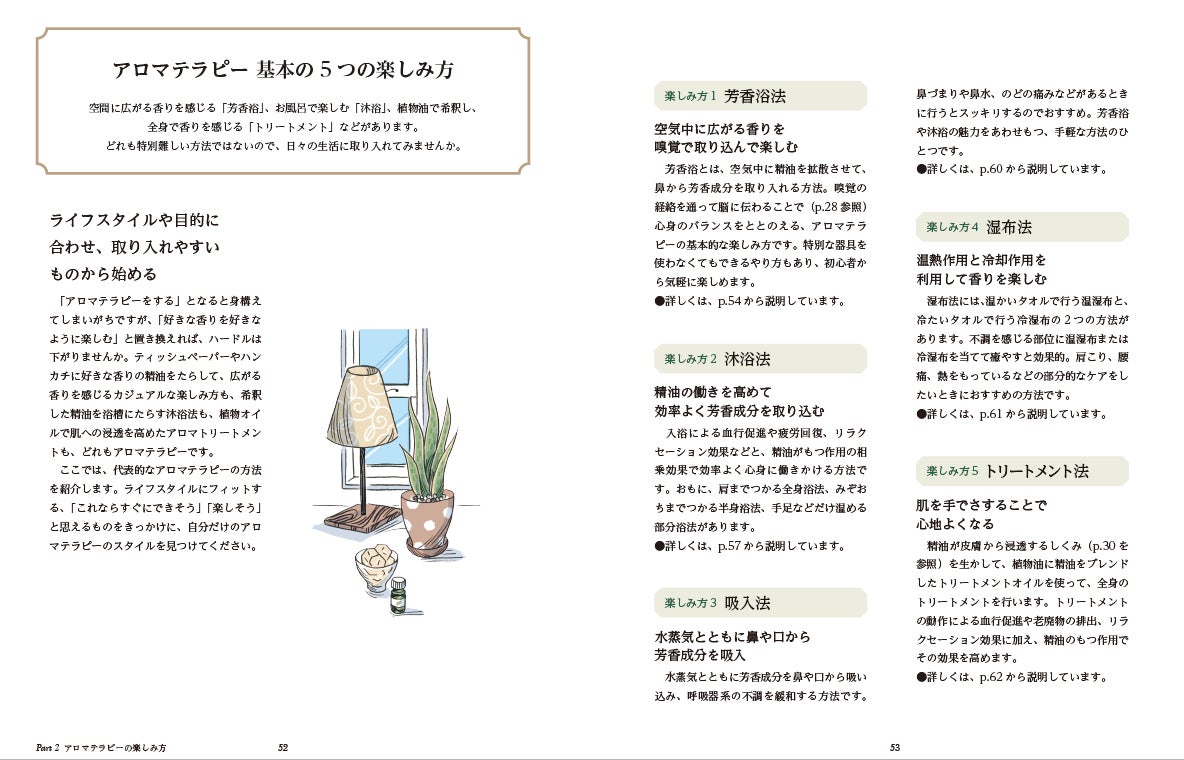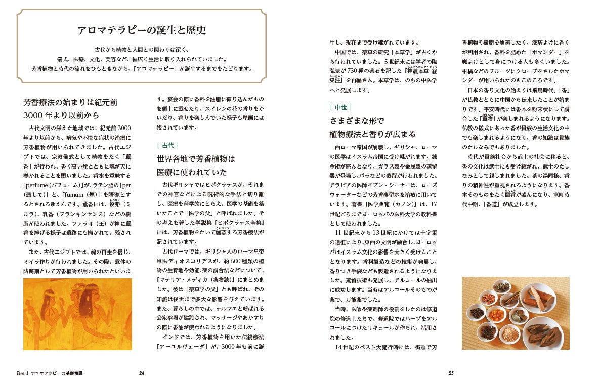 アロマテラピーに必要な知識が得られ、常に傍らにおいて役立てられるだけでなく、読みものとして楽しめます。さらに書棚に置いて眺めるだけで心躍る造本の美しさも格別で、長く愛用いただける内容になりました。