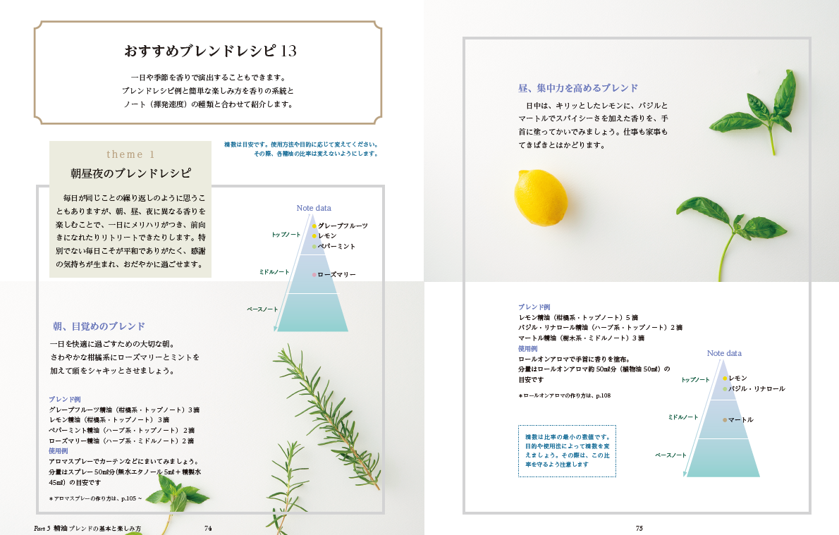 暮らしでの楽しみ方や、ブレンド方法や、アロマクラフトなどレシピ満載