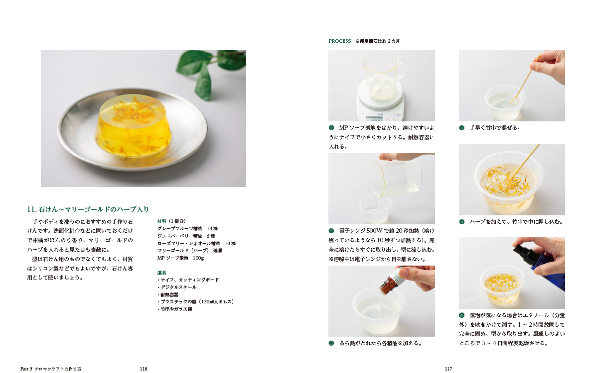 またスプレー、石けん、ローション、リードディフューザーなど基本クラフトレシピは、写真で解説しています。