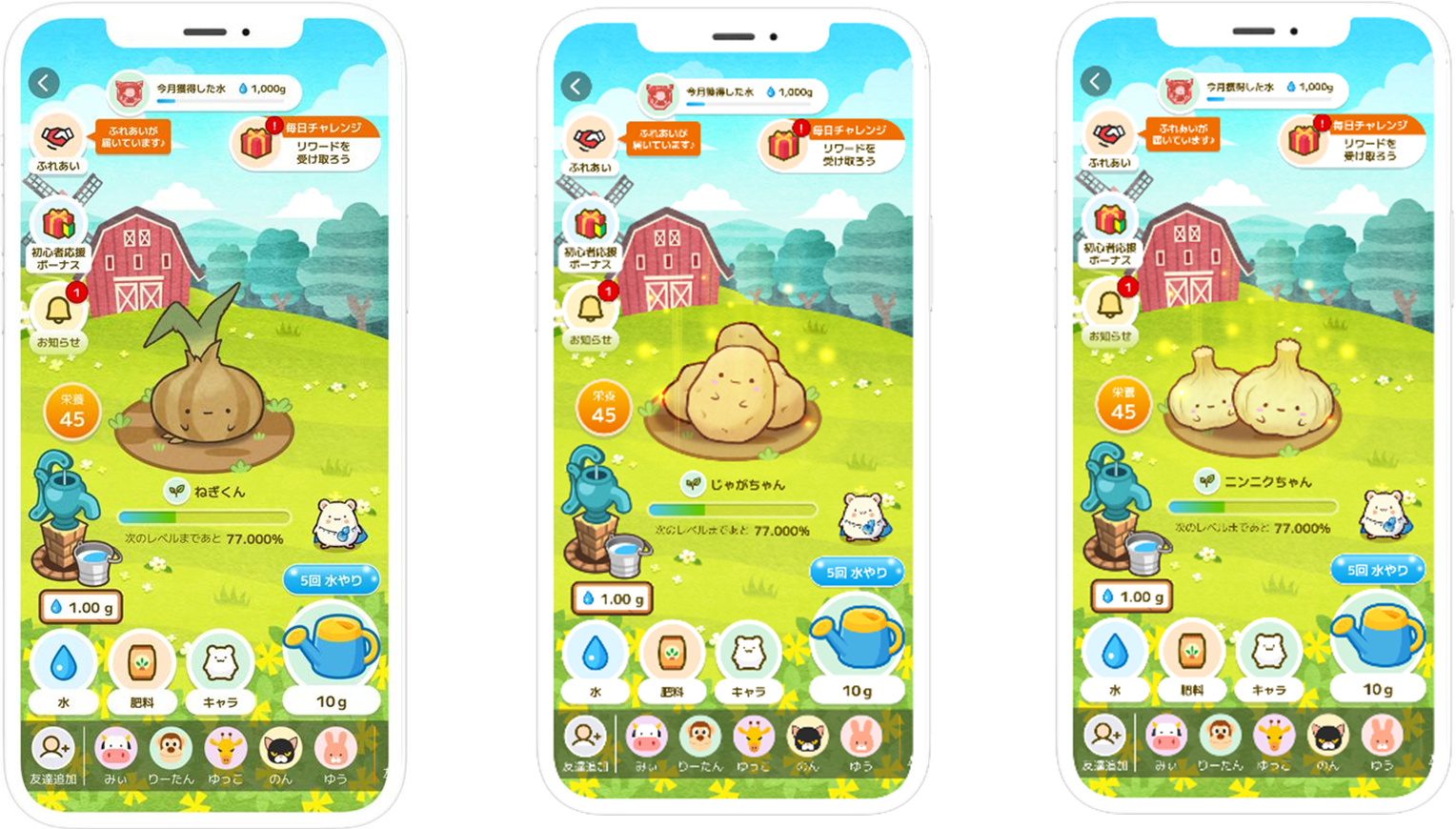 本取り組みの第一弾として、規格外のたまねぎ・じゃがいも・ニンニクを対象に提供を開始しました。ユーザーはアプリ内で対象の作物を育てて収穫すると、実物の野菜が自宅に届きます。