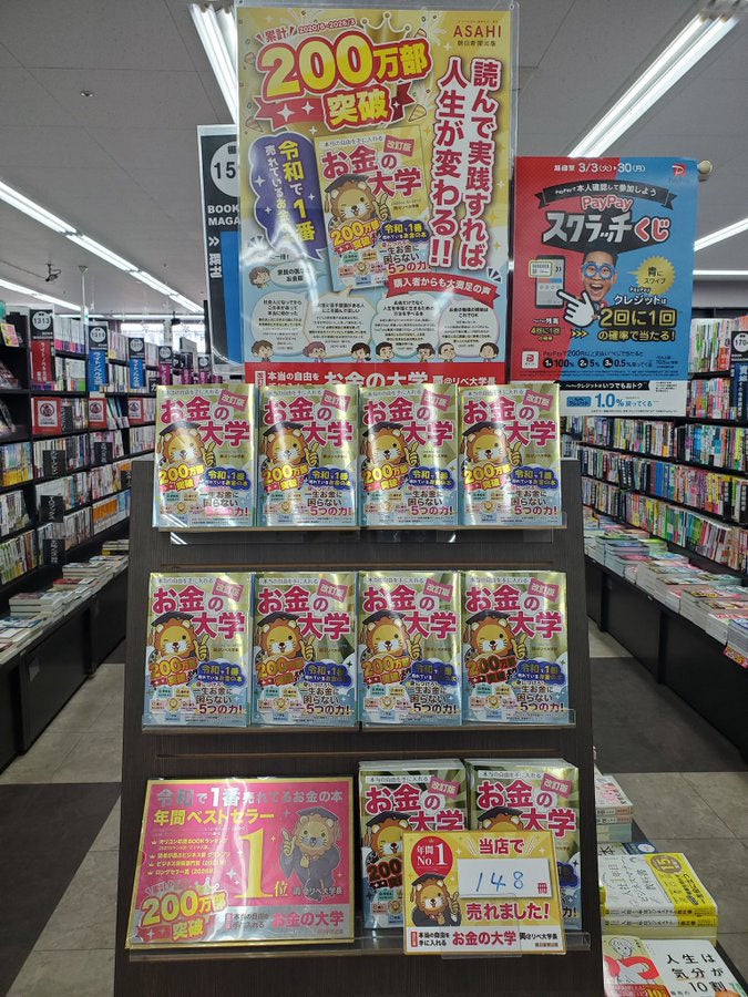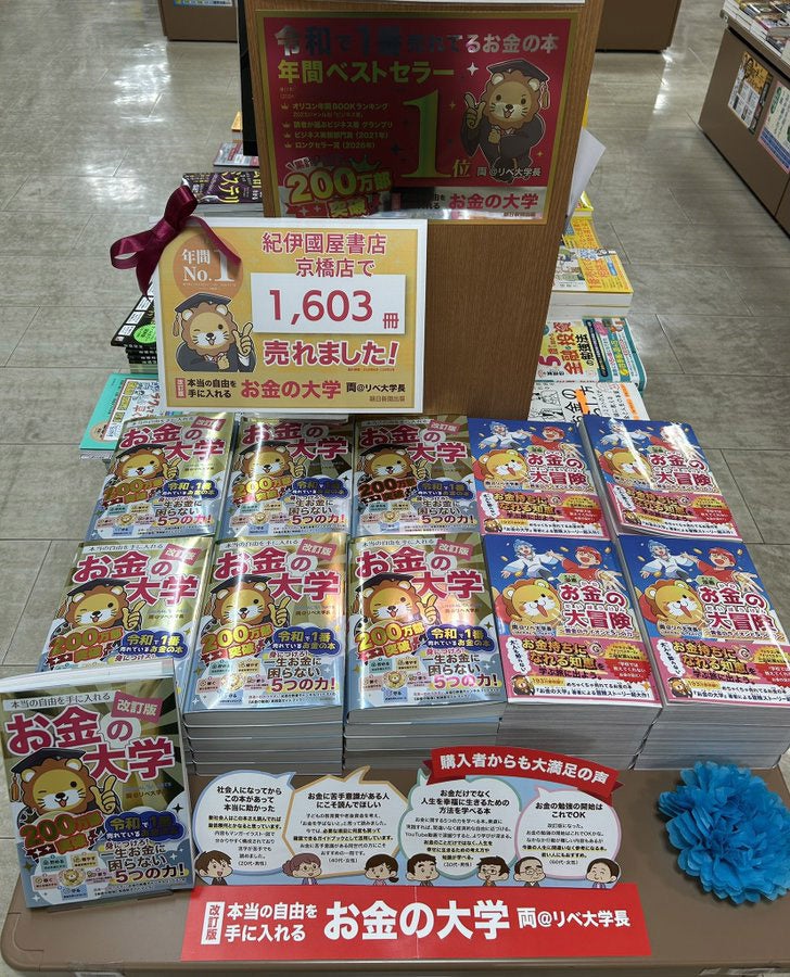株式会社朝日新聞出版は、両@リベ大学長 著『改訂版 本当の自由を手に入れる お金の大学』(2024年11月発売)が累計200万部を突破したことを記念し、全面がキラキラ光る「スペシャルカバー版」の展開を開始しました。協力書店では特設パネル・POPの掲示やオリジナルカードカレンダーの配布を実施しています。