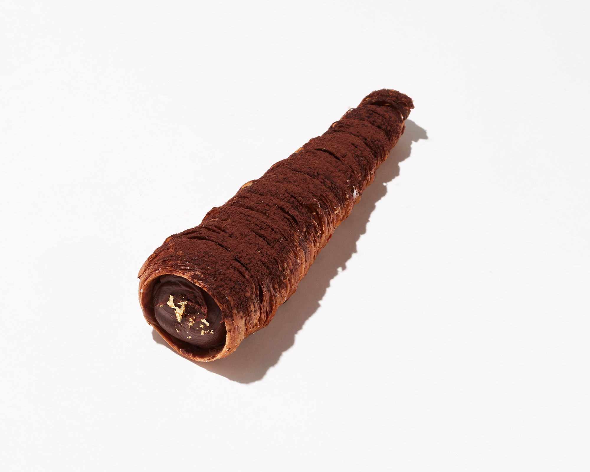 まずご紹介するのは、ほのかにオレンジリキュールが香る生チョコを贅沢に絞り込んだ「クロワッサンコロネ 生チョコ」。