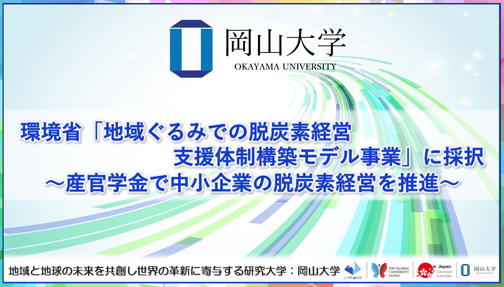 【岡山大学】環境省「令和6年度地域ぐるみでの脱炭素経営支援体制構築モデル事業」に採択~産官学金で中小企業の脱炭素経営を推進~