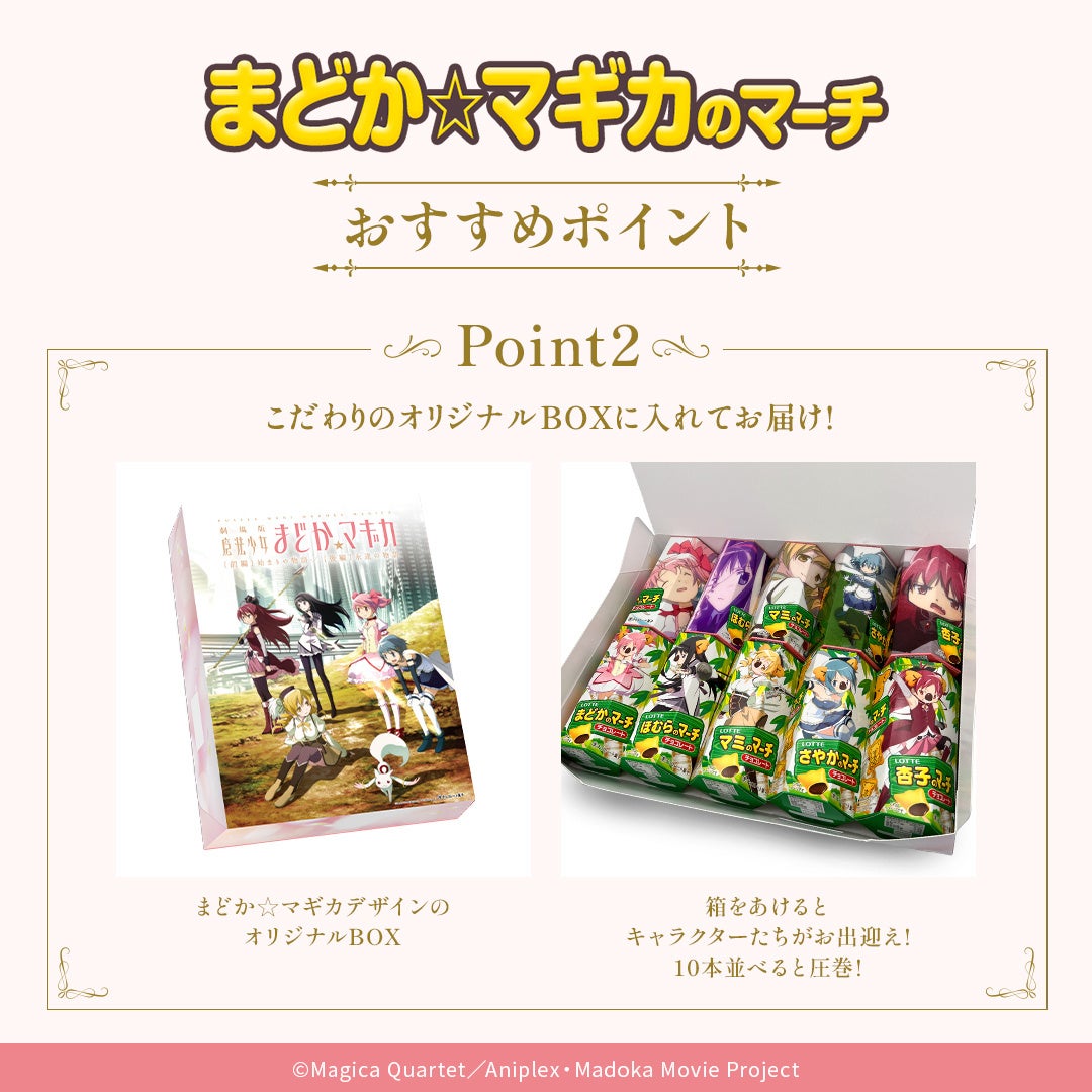株式会社ロッテは10月3日(木)正午、ロッテオンラインショップ限定で「オリジナルコアラのマーチ」シリーズから「まどか☆マギカのマーチ」を販売いたします。『魔法少女まどか☆マギカ』のキャラクターが、発売40周年のチョコ菓子「コアラのマーチ」に大変身し、10種類セットで発売します。ロッテオンラインショップにて、期間限定販売となります。ぜひご覧ください!
