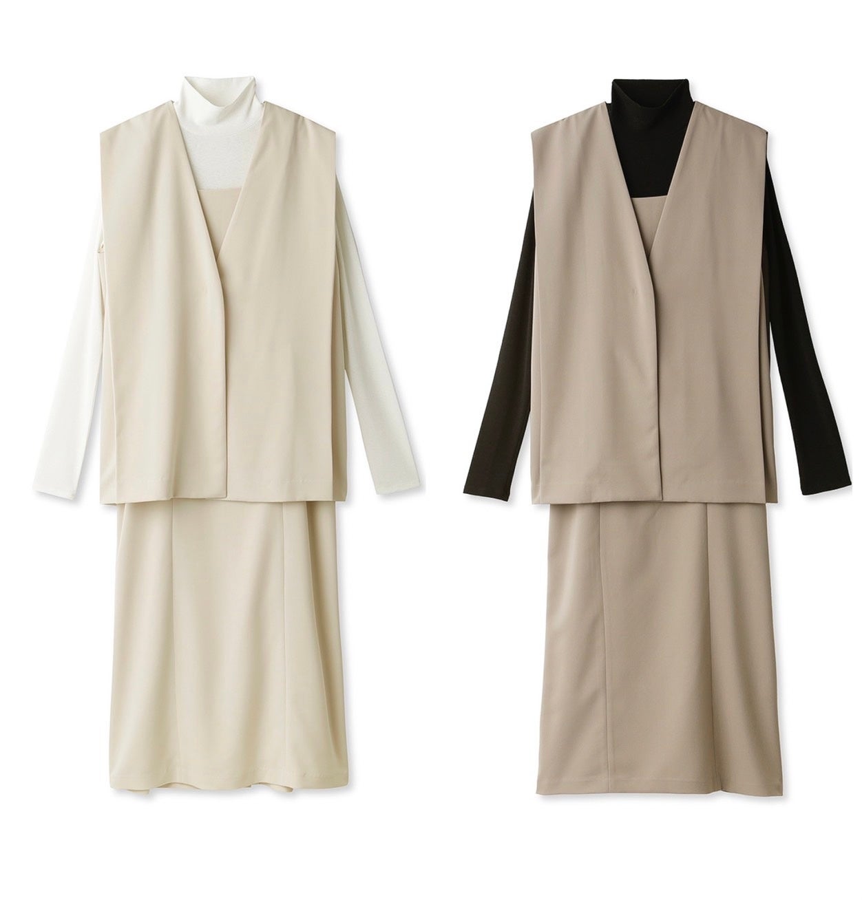 大ヒットアイテムのジレ×キャミワンピースセットにタートルネックトップスも組み合わせた豪華なセットアイテム。