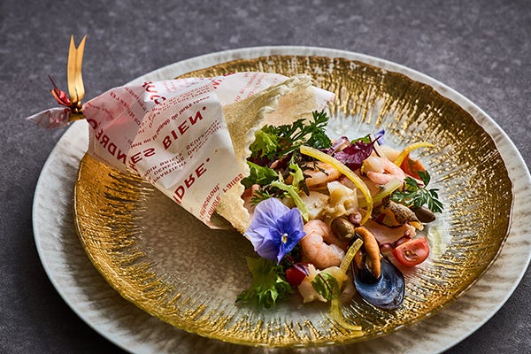 オードブル:魚介のサラダ“フラワーブーケスタイル”