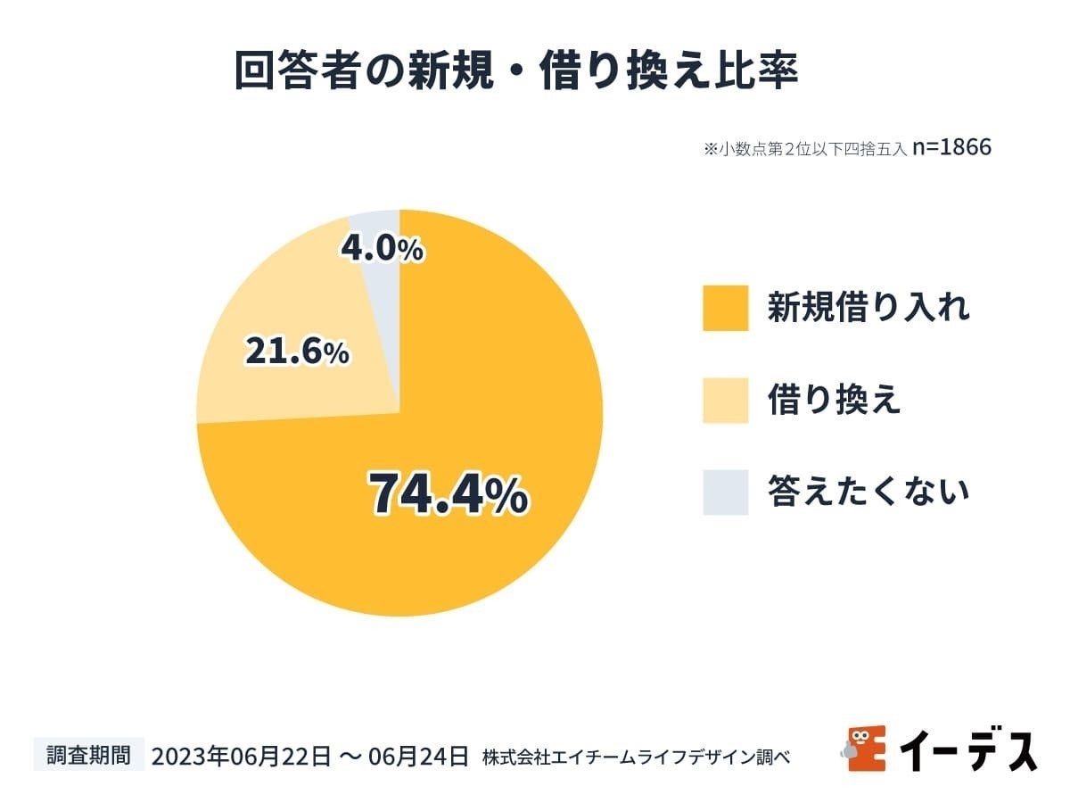 ■新規借り入れは74.4%、借り換えは21.6%という結果に