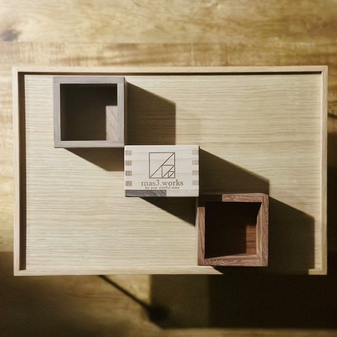 “ウイスキーを桝で、かつ色々な樹種で飲んでみたら味の変化が面白そう”という思いから生まれた広葉樹の枡のほか、様々な木工製品を紹介します。
