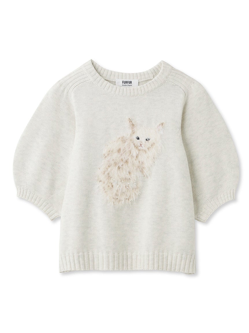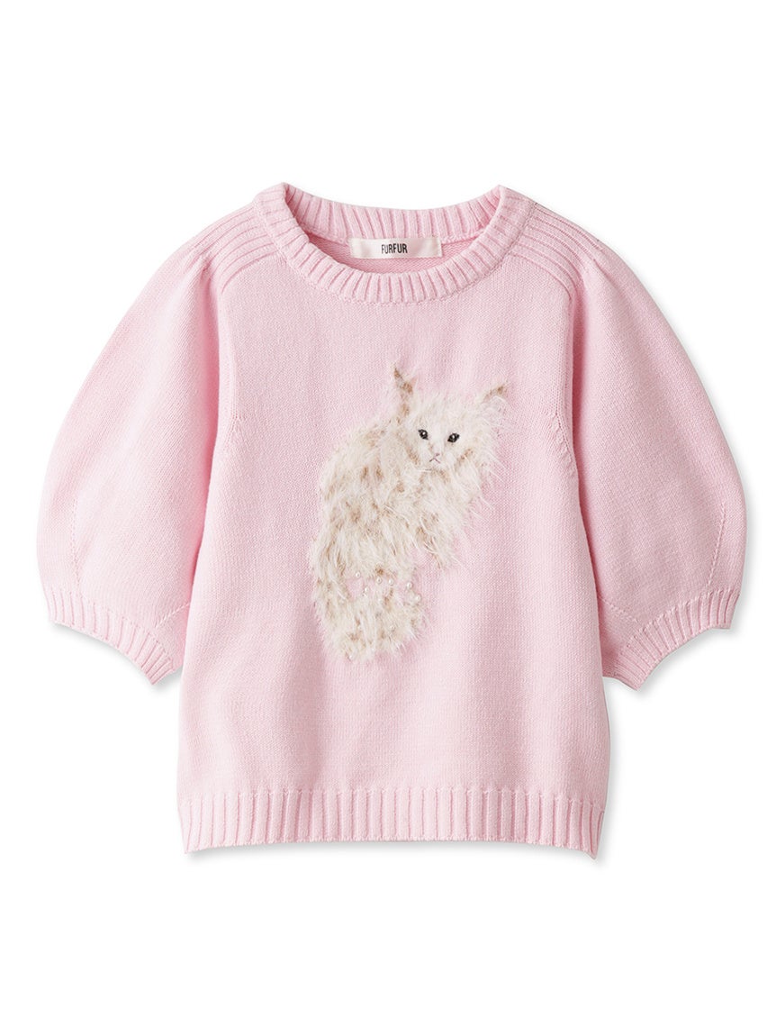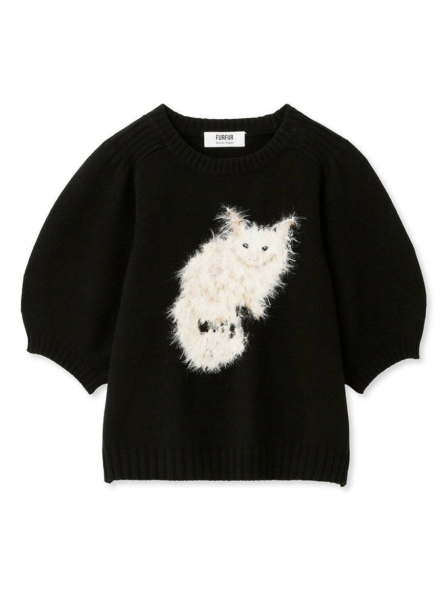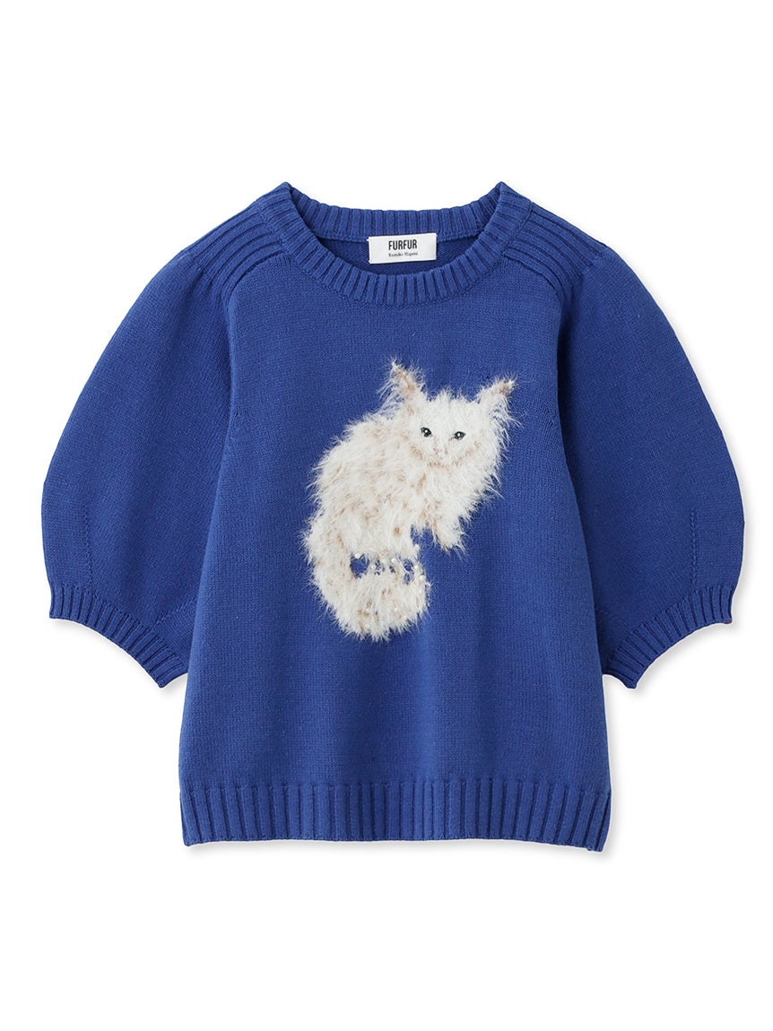 6種類の繊細な糸で色使いや毛並み感まで表現した半袖ジャガードニット。
