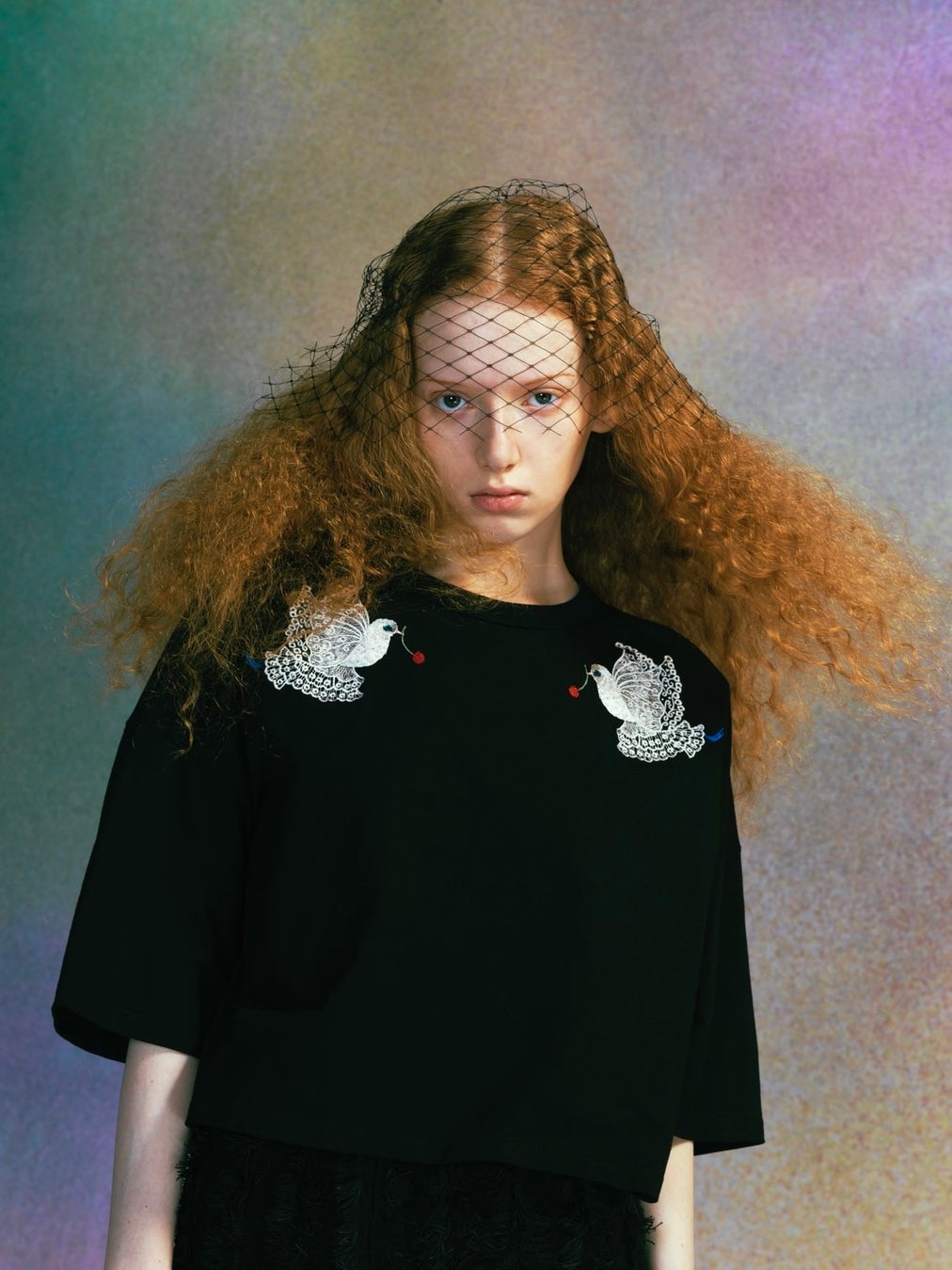 胸元に細やかな刺繍で表現したリールをシンメトリーに配し、着やすいカットソーに仕上げています。