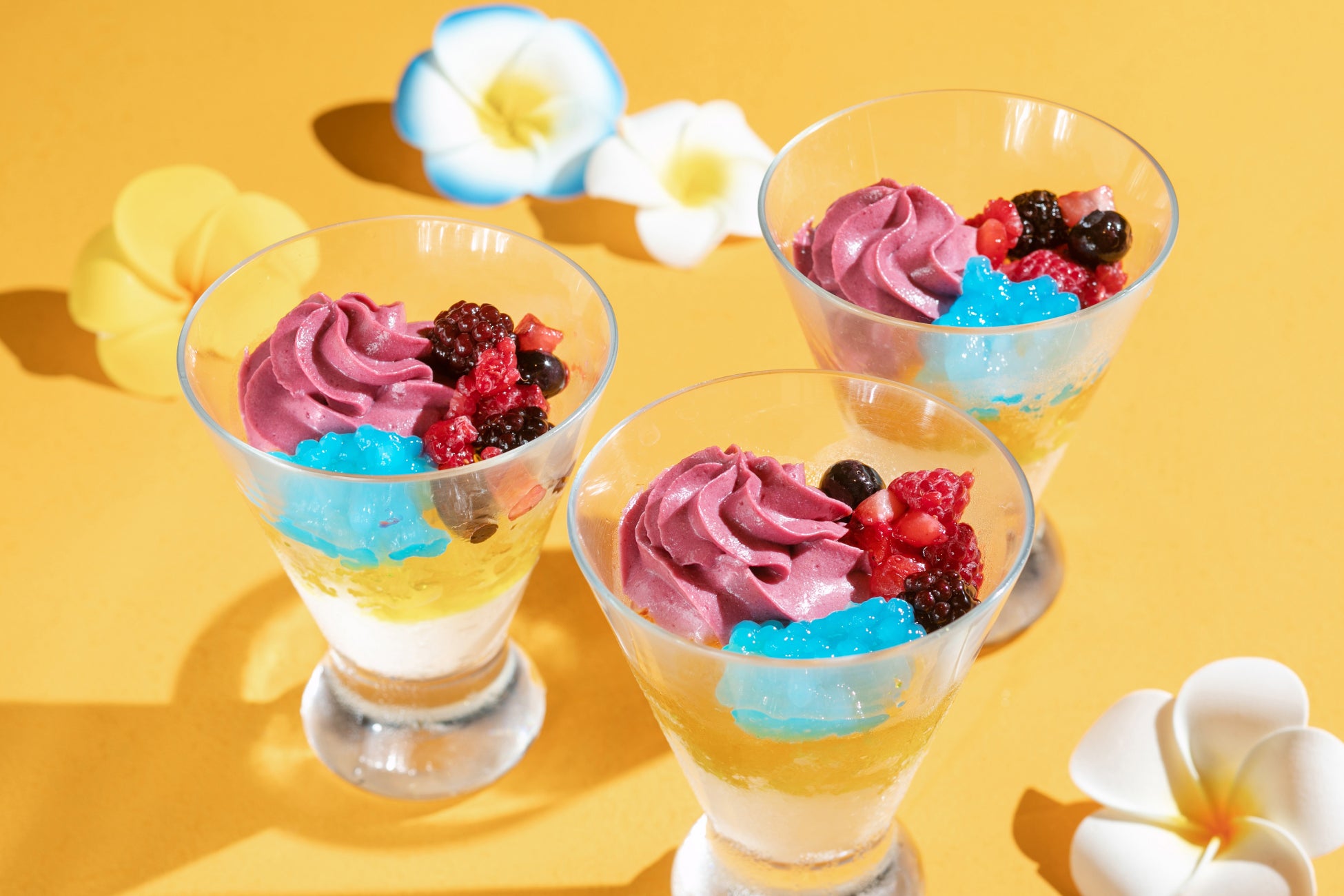 ブルーハワイとマンゴーのゼリー / ハイビスカスラズベリーのロールケーキ など
