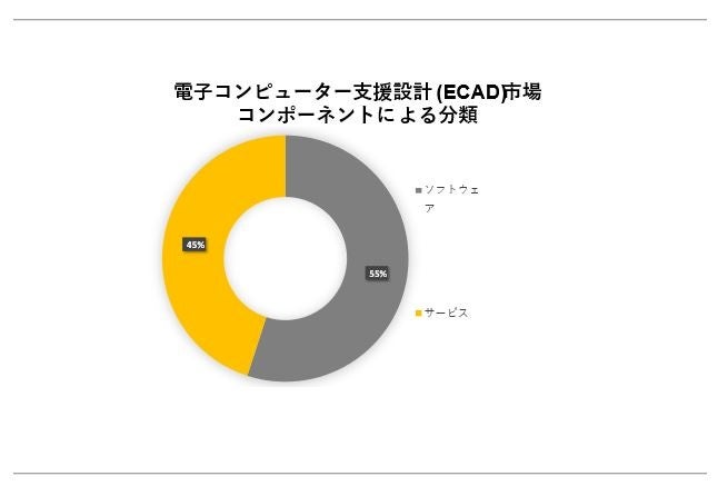 ソフトウェアセグメントに基づいて、電子と電気回路の設計、テスト、シミュレーションに使用する各種ツールやアプリケーションが含まれます。ソフトウェアは、概念的な新製品シミュレーションを実行できるため、予測期間中にこの市場をリードします。サービスセグメントには、ECADベンダーが提供する、トレーニング、インストール、カスタマイズなどの各種サポートおよびコンサルティングサービスが含まれます。